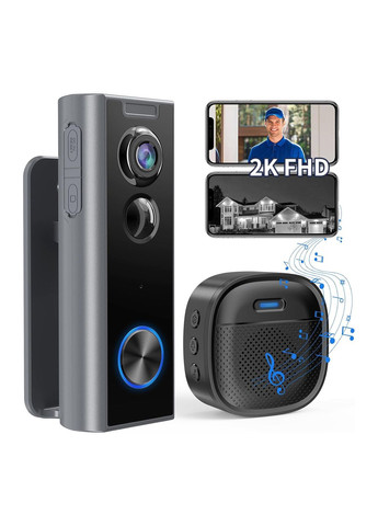 Видеозвонок Ankway 2. 4GHz WiFi с камерой Регулируемый дверной звонок 2K FHD со звонком, PIR-детектором, ночным видением, двусторонним аудио, водонепроницаемый, работает от батареи, имеет SD-карту и облачное хранилище Рекомендуемое использование - внешняя безопасность Видеодомофон Технология подключения - беспроводной Локальная запись, HD-разрешение, двусторонняя аудиосвязь, ночное видение, датчик движения Беспроводной звонок с камерой и встроенным PIR-датчиком, который позволяет получать тревогу и push-оповещения в режиме реального времени при любом сработавшем обнаружении человека. С помощью двустороннего аудиодомофона вы можете видеть, слышать и разговаривать с посетителями или курьерами в любом месте Легкая регулировка, многоугольный кронштейн Аккумуляторная батарея и устойчивость к погодным условиям: этот звонок с камерой-батареей питается от аккумуляторных батарей, а также имеет низкое энергопотребление и быструю зарядку. Водонепроницаемый корпус Изготовлено в Китае