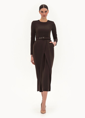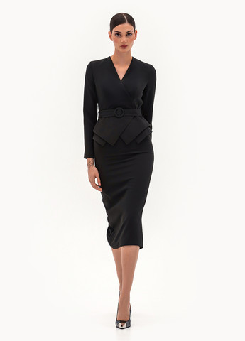 Вид изделия: брючный комплект, состоящий из двубортного жакета и брюк с накладной складой с пряжками перетяжками и отлетными поясами-завязками. Силуэт, длина: свободный. Посадка по линии талии: классическая. Плотность и вид ткани: средней плотности, костюмный, шерстяной, текстильный материал. Вид застежки: пряжки перетяжки, отлетные пояса, молния в брюках. Наличие подкладочной ткани: присутствует. Наличие и вид карманов: карманы в рамку с клапаном, подкройные карманы. Вырез горловины: V - образный. Вид рукава: классический, трехшовный, со шлицей и пуговицами по низу рукава. Уход за изделием: Сухая чистка.