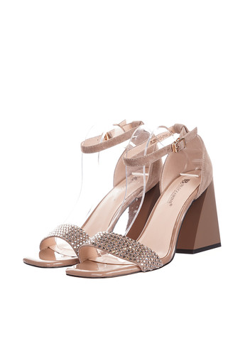 Цвет Бежевый / Состав верха Натуральная кожа / Декор Стразы / Тип каблука Толстый / Застежка Пряжка