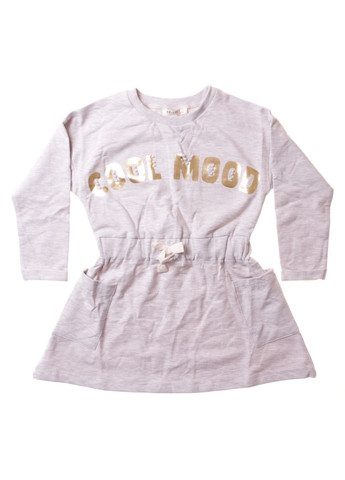 Платье прямого силуэта, отрезное по линии талии. Лиф платья трикотажный, юбка – основа х/б трикотаж, а верх – два яруса мягкого фатина. Горловина овальная, обработана мягкой трикотажной бейкой. На левом плече застёжка на фирменные, перламутровые пуговки, которая облегчит процесс одевания (для размеров 86, 92 и 98).