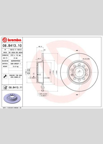 Диск гальмивний ЗАДН AUDI TT 10/98-06/06,SEAT CORDOBA 09/02- IBIZA 02/02-LEON 11/99-06/06 TOLEDO 04/99-05/06,SKODA FABIA 12/06- КОД ТОВАРА BM 08.7165.11 АРТИКУЛ И ПРОИЗВОДИТЕЛЬ ТОВАРА 08.7165.11 (BREMBO) Характеристика Свойство Висота 40 мм Диаметр центрування 65 мм Додатковий вириб/додаткова информация 2 с винтами Зовнишний диаметр 230 мм Количество отверстий 5 Мин. товщина 7 мм Поверхность с покрытием Пусковий момент 120 Н·м Тип тормозного диска повн. Товщина гальмивного диска 9 мм КАТАЛОЖНЫЕ НОМЕРА АНАЛОГОВ Производитель Артикул Производитель Артикул Производитель Артикул ATE 24010901231 ATE 24030901231 AUDI 1J0615601C AUDI 1J0615601N AUDI 1J0615601P AUDI 2Q0615601H AUDI 1J0615601Q AUDI 1J0615601 BLUE PRINT ADV184302 BLUE PRINT ADV184325 BOSCH 0986478868 BREMBO 08716575 BREMBO 0871651X CHAMPION 562053CH DELPHI BG3034C EUROREPAR 1618874180 FERODO DDF929 FTE BS4753 FTE BS4753B HERTH+BUSS JAKOPARTS J3310800 LPR A1441PR LPR A1441P MANDO MBC035320 METELLI 230366 NK 204761 PROFIT 50100929 REMSA 654700 SEAT 1J0615601N SEAT 1J0615601P SEAT 1J0615601Q SEAT 2Q0615601H SEAT JZW698601AJ SEAT 1J0615601 SEAT 1J0615601C SKODA 1J0615601 SKODA 1J0615601C SKODA 1J0615601N SKODA 1J0615601P SKODA 1J0615601Q SKODA 2Q0615601H SKODA (SVW) 6QD615601A SKODA (SVW) 6QD615601B SWAG 30918488 TRW DF2805 VW 1J0615601 VW 1J0615601C VW 1J0615601N VW 1J0615601P VW 1J0615601Q VW 2Q0615601H VW JZW698601AD VW JZW698601AE VW JZW698601AJ VW (FAW) 1J0615601C VW (FAW) 1J0615601P VW (FAW) L180615601A VW (FAW) L6QD615601 VW (FAW) L6QD615601A VW (SVW) 6QD615601 VW (SVW) 6QD615601B ZIMMERMANN 100123620 ZIMMERMANN 100123653 ZIMMERMANN 100123652 ПРИМЕНЯЕМОСТИ Марка / Модель Марка / Модель Марка / Модель Диск Audi A1 (8X1, 8XK) Диск Audi A1 SPORTBACK (8XA, 8XF) Диск Audi A2 (8Z0) Диск Audi A3 (8L1) Диск Audi TT (8N3) Диск Audi TT Roadster (8N9) Диск Seat ARONA (KJ7, KJP) Диск Seat CORDOBA (6K1, 6K2) Диск Seat CORDOBA Vario (6K5) Диск Seat CORDOBA (6L2) Диск Seat IBIZA III (6L1) Диск Seat IBIZA IV (6J5, 6P1) Диск Seat IBIZA IV SC (6J1, 6P5) Диск Seat IBIZA IV ST (6J8, 6P8) Диск Seat IBIZA V (KJ1, KJG) Диск Seat LEON (1M1) Диск Seat TOLEDO II (1M2) Диск Seat TOLEDO IV (KG3) Диск Skoda FABIA I (6Y2) Диск Skoda FABIA I Лифтбек (6Y3) Диск Skoda FABIA I COMBI (6Y5) Диск Skoda FABIA I PRAKTIK (6Y5) Диск Skoda FABIA II (542) Диск Skoda FABIA II COMBI (545) Диск Skoda FABIA III (NJ3) Диск Skoda FABIA III Универсал (NJ5) Диск Skoda FABIA IV (PJ3) Диск Skoda KAMIQ (NW4) Диск Skoda OCTAVIA I (1U2) Диск Skoda OCTAVIA I COMBI (1U5) Диск Skoda RAPID (NH3, NK3, NK6) Диск Skoda RAPID Spaceback (NH1) Диск Skoda ROOMSTER (5J7) Диск Skoda ROOMSTER Praktik (5J) Диск Skoda SCALA (NW1) Диск VW BORA I (1J2) Диск VW BORA Variant (1J6) Диск VW BORA (9M2) Диск VW GOLF IV (1J1) Диск VW GOLF IV Van (1J1) Диск VW GOLF IV Variant (1J5) Диск VW GOLF VAN IV Variant (1J5) Диск VW NEW BEETLE (9C1, 1C1) Диск VW NEW BEETLE Кабриолет (1Y7) Диск VW POLO (9N_, 9A_) Диск VW POLO IV Лифтбек (9A4, 9A2, 9N2, 9A6) Диск VW POLO IV Лифтбек (9N2) Диск VW POLO V (6R1, 6C1) Диск VW POLO V Лифтбек (602, 604, 612, 614) Диск VW POLO VI (AW1, BZ1, AE1)
