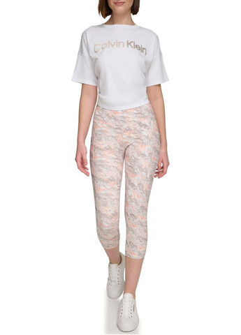 Леггинсы женские Calvin Klein. Облегающие леггинсы с высокой посадкой на эластичной резинке, укороченного кроя. Карманы по бокам. Оригинальный принт. Логотип бренда сзади на широком эластичном поясе. Приятная к телу гладкая ткань. Отличное качество.