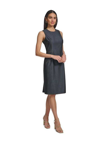 Платье-футляр из денима Calvin Klein без рукавов. Элегантное, изысканное платье от Calvin Klein. Стиль, повышающий уверенность в себе, в котором всегда выглядиш хорошо. Изготовленное из ткани деним, это платье имеет гладкую, облегающую форму. Круглый вырез спереди и молния на спине создают определенную, привлекательную форму. Платье без рукавов. Без подкладки. Сзади молния. Легкая ткань платья. Отличное качество.
