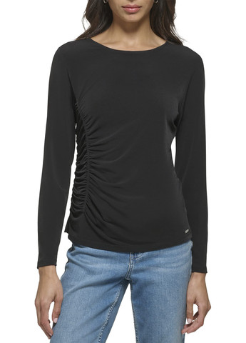 Женский лонгслив Calvin Klein. Эта кофта создана для максимального комфорта и стиля. Круглый вырез. Длинные рукава. Присборенная ткань с одного бока. Металлическая фурнитура с логотипом бренда снизу спереди. Очень приятная на ощупь легкая ткань. Отличное качество.