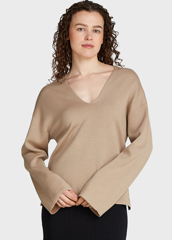 Цвет Бежевый / Фасон Пуловер / Узор Однотонный / Стиль Кэжуал / Длина рукава Длинный
