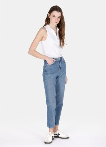 Женские джинсы прямого кроя стандартного синего цвета с легким выбеливанием в области карманов. Выполнены из качественного денима с легкой эластичностью для комфорта. Модель имеет удобную посадку, ровные швы и фирменную фурнитуру. Подходят для ежедневной носки, легко сочетаются с различной верхней одеждой.