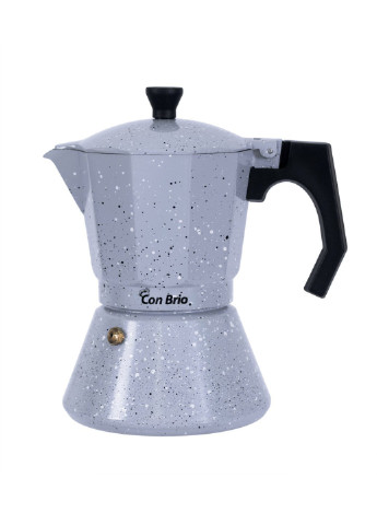 Кофеварка-эспрессо гейзерного типа. Принцип работы гейзерной кофеварки Con Brio прост: пар в нижней части достигает высокого давления и постепенного вытесняет кипящую воду через воронку и фильтр, в котором находится молотый кофе. Вода проходит через молотый кофе и попадает в верхний резервуар, где собирается готовый напиток. Кофе, приготовленный этим способом, получается ароматным и насыщенным. Такой кофе разливают в чашки небольшого объема, 50-60 мл. На основе кофе, заваренного таким образом, можно приготовить даже каппучино. Характеристика: Страна-производитель: Китай Материал корпуса: Алюминий Совместимость с источниками тепла: Подходит для всех источников тепла, кроме индукционных Материал ручки: Пластик Объем: 450 мл Размеры: 21 х 11 х 18 см Цвет: Серый Особенности: На 9 чашек Страна регистрации бренда: Украина Страна-производитель товара: Китай Вес, г: 520