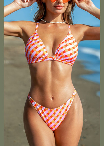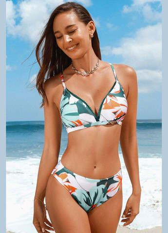 Сразите всех наповал этим весенним купальником-бикини с цветочным принтом и регулируемыми тонкими бретельками, включающим треугольный верх на косточках и нижнюю часть с высокой талией и отделкой в виде салата.