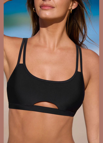 Бикини из двух частей, верх бикини без косточек, регулируемые тонкие бретельки, широкая полоса под грудью, ребристая структура, модные плавки бикини с глубоким поясом.