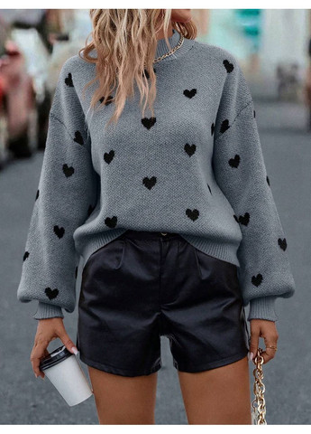 Цвет Серый / Узор Сердечки / Стиль Повседневный / Длина рукава Длинный