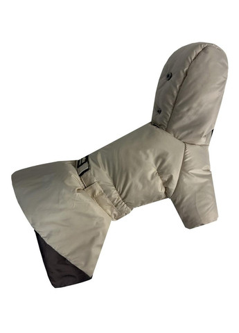 Двухсторонний жилет Ткань водоотталкивающая плащевка сверху, вторая сторона жилета из клетчатой фланелевой ткани Наполнитель – синтепон Застегивается и регулируется по обхвату поясом Модернизированный капюшон – высокий воротник, можно носить как капюшон или заворачивать воротником. На шее есть отверстие для поводка Модель унисекс