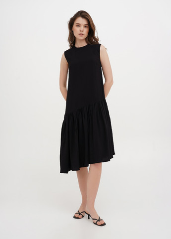 кешбэк от 10 ₴-58%2 400 ₴1 000 ₴Бесплатная доставка сESSME черное кэжуал платье а-силуэт однотонное с воланами без рукава вискоза - производство – УкраинаS•MМатериал Вискоза / Цвет Черный / Фасон А-силуэт / Длина изделия Миди и ниже колена / Стиль КэжуалКрой: свободный. Вырез: круглый. Рукав: без рукавов. Застежка: пуговица.