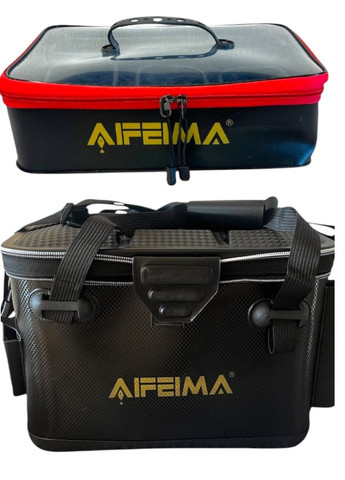 1. Сумка рыболовная AFEIMA - 46 л 48*30*32см — универсальная, устойчивая, вместительная, непромокаемая сумка для рыбалки с 4-мя держателями для удилищ. Форма прямоугольная, размер 48*30*32 см. Вес 2,3 кг. Цвет черный.