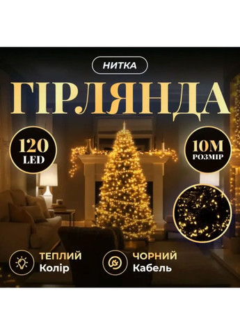 Новогодняя гирлянда комнатная нить длиной 10 метров с 120 LED-лампами на черном проводе — это идеальное решение для создания волшебной атмосферы в вашем доме или офисе. Эта гирлянда не только украсит ваше пространство, но и добавит уют и тепло в зимние праздники. Светодиодная гирлянда обладает мощностью всего 8 Вт, что делает её энергоэффективной и долговечной. Мягкое желтое свечение создает комфортную обстановку, а 8 различных режимов работы позволяют выбрать оптимальный вариант освещения: от спокойного мерцания до яркого и динамичного сияния. Основные характеристики: Длина: 10 метров — идеально подходит для украшения больших пространств. Количество диодов: 120 — обеспечивает яркое и равномерное освещение. Цвет провода: черный — легко вписывается в любой интерьер. Цвет свечения: желтый — создает теплую и уютную атмосферу. Материал оболочки: каучук — обеспечивает надежную изоляцию и долговечность. Преимущества: Энергоэффективность: минимальное потребление электроэнергии при высоком свете. Удобное управление: контроллер позволяет легко переключать режимы освещения. Долговечность: качественные материалы гарантируют надежность и безопасность использования. Универсальность: подходит для украшения интерьеров, фасадов, окон, дверей и террас. Эта гирлянда станет идеальным выбором для тех, кто хочет создать праздничное настроение в своем доме, офисе или на мероприятии. Она отлично подойдет для украшения как в новогодние праздники, так и в любое другое время года, когда вам нужно добавить немного волшебства в повседневную жизнь. Важно отметить, что данный товар подлежит возврату только в случае проверки его исправности на почте. В остальных случаях возврат не возможен, что подчеркивает высокое качество и надежность этого продукта.