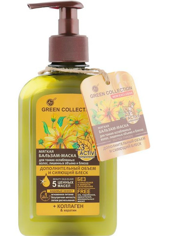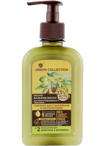 Сухим и поврежденным волосам непременно нужен особый уход. Попробуйте продукт, предложенный украинским производителем натуральной косметики Green Collection! Мягкая бальзам-маска для волос «Глубокое восстановление и ультрапитание» безопасна даже при частом применении, ведь она не содержит вредных компонентов - парабенов, минеральных масел и красителей, а также лаурилсульфата. Интенсивное питательное и восстановительное средство наполнено силой 23 активных ингредиентов, среди которых – кератин, аргинин и пять натуральных масел. Мгновенная мягкость, гладкость, легкое расчесывание – все это благодаря уникальной формуле бальзам-маски, разработанной с участием фармацевтов. Натуральная косметика для здоровья и красоты ваших волос – забота Green Collection!