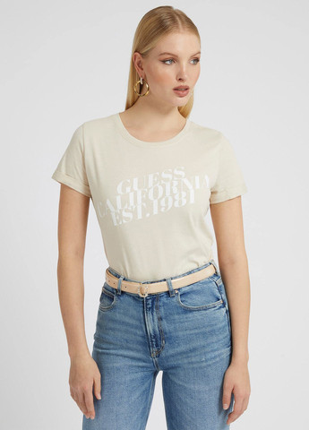 Женская футболка GUESS. Мягкая и легкая, стильная, фирменная футболка. Футболка хорошо тянется. Круглый вырез, короткие рукава с подворотами. Очень мягкая ткань. Спереди надпись с логотипом бренда . Отличное качество.