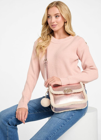 Сумка через плечо от Guess. Эта стильная сумка через плечо от Guess добавит шика вашему образу. Отделка из шерпы прибавляет изюминки. Есть ремешок, который регулируется и отстегивается. Сумка застегивается на кнопку. Сумка с одним отделением. Внутри карман на молнии. Металлический логотип бренда на лицевой стороне. В комплекте брелок из шерпы. Есть подкладка. Отличное качество.