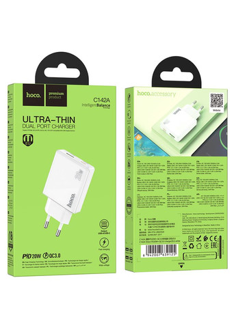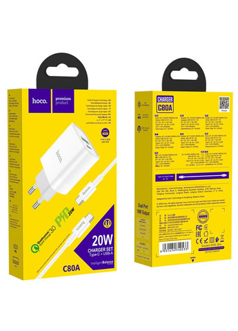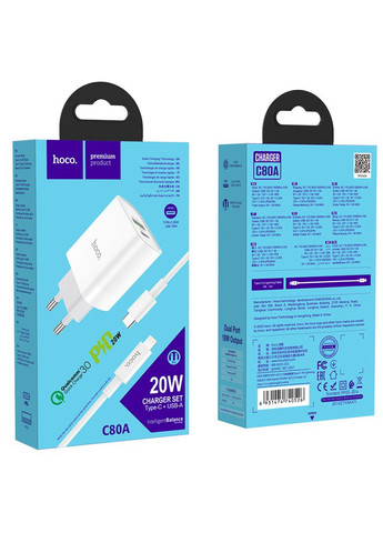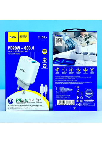 Этот зарядный набор состоит из компактного адаптера, мощностью до 30Вт, и кабеля Type-C → Lightning длиной примерно 1м, и полностью готов к ежедневному использованию с iPhone. Адаптер поддерживает современные стандарты быстрой зарядки – PowerDelivery (PD), QC3.0, а также PPS для фазы 3.3–16В и током до 2А, что означает оптимальную зарядку устройств с динамической подачей тока. Корпус выполнен из прочного и огнестойкого пластика (ABS+ПК), корпус имеет приятную на ощупь матовую поверхность и округлые формы, создающие эстетичный и аккуратный вид. Европейская вилка с никелированным покрытием обеспечивает долговечное соединение и адаптирована под стандарты розеток Украины и ЕС. Благодаря поддержке входной мощности до 30Вт (5В/3А, 9В/3А, 12В/2,5А, 15В/2А, 20В/1,5А), адаптер способен заряжать iPhone примерно до 50% менее чем за полчаса. Кабель в комплекте полностью совместим с мобильными устройствами Apple – достаточно только распаковать и подключить. Устройство оснащено многоуровневой защитой – от перегрева, перенапряжения, короткого замыкания и перегрузки, что гарантирует безопасную эксплуатацию даже при интенсивном использовании. Зарядный набор очень компактен – его размеры около 77×33×33мм, вес около 76 г, что упрощает транспортировку и хранение – идеальный вариант для путешествий или ежедневного ношения в сумке. HocoC148A Charm PD30W – это элегантное, безопасное и эффективное решение для быстрой зарядки iPhone. Все необходимое уже в комплекте, а мощность 30Вт в сочетании со стандартами PD, QC3.0 и PPS обеспечивает комфортную зарядку даже на ходу. Надежный корпус и защита гарантируют работу в ежедневных условиях дома, в офисе или во время путешествий. Характеристики: Бренд: Hoco Страна производитель: Китай Цвет: белый Тип: сетевое зарядное устройство Тип разъема: USB Type-C Выходная мощность: 30 W Вход: 100 – 240 V; 0.5 A; 50|60 Hz Выходное напряжение (output): 12 V Сила выходного тока: 2,5 A Быстрая зарядка: Power Delivery 3.0; Quick Charge 3.0; PPS; AFC; FCP; SCP Материал: ABS+РС Размер: 77 × 33 × 33 мм Вес: 76 г Комплектация: сетевое зарядное устройство + кабель Type-C to Lightning 1 м
