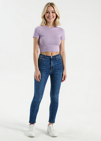 Цвет Синий / Фасон Скинни / Высота посадки Средняя талия / Декор Потертости / Сезонность Всесезон