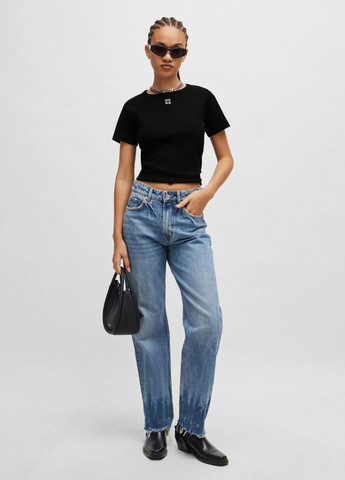 Цвет Черный / Фасон Укороченные / Высота посадки Средняя талия / Декор Нашивки, Потертости, Рваный / Сезонность Всесезон