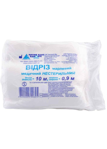 Особенности отреза марлевого медицинского 10 м х 90 см: Отрез изготовлен из марли 20-го типа (плотность 27 г/м²). Четкость в пределах отклонений по длине и ширине. Высокая капиллярность. хлора. Марлевые отрезы применяются в медицине, быту, полиграфии и т.д.