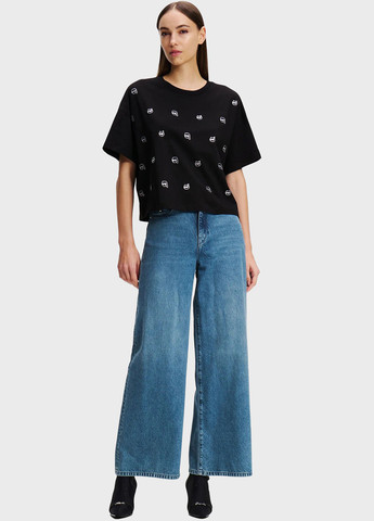 Karl Lagerfeld Paris Mens Contrast Fabric Mesh Logo T-Shirt Black LM2K3895