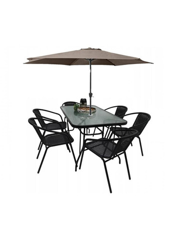 Комплект садовой мебели Kontrast Garden Boston Black-6GR (580754) Современные, стильные и долговечные металлическая мебель. Они не требуют сложных процедур ухода или обслуживания, вам нужна только мягкая ткань, вода или жидкость для мытья посуды, чтобы длительное время поддерживать их в хорошем состоянии. В то же время он легкий и простой в хранении. Мебель идеально подходят для отдыха на открытом воздухе, на террасах и в беседках. Спецификация стола: • Практический стол для сада или террасы • Столешница изготовлена из прочного закаленного стекла • Стальные профили с порошковым покрытием • Подходит как для внутреннего, так и для наружного использования • Легко собирается • Размеры стола: 120x70см Спецификация кресла: • Его можно использовать в саду, на террасе - для внутреннего и наружного применения • Качественная обработка и использование современного материала для сидения и спинки стула • Стальные профили с порошковым покрытием • Устойчивость к различным погодным условиям • Цвет рамы: черный • Нагрузка 120 кг. Садовий зонт Boston 3м Высококачественные материалы, устойчивые к погодным условиям. Рама имеет функцию регулировки угла наклона зонта. Оснащен кривошипом для разложения и сложения. Практически и крепко. Многофункциональное использование - отдельно стоящие или крепятся к столам с отверстием в верхней части. Размеры: • Диаметр навеса: 3м • Общая высота: 1,9 - 2,5 м • Диаметр трубки: 36 мм Характеристики Комплект садовой мебели Kontrast Garden Boston Black-6GR (580754) Гарантия .........................12 мес. Материал...................... искусственный ротанг, металл, пластик, сталь Страна-производитель.......................... Польша Вид ......................комплект мебели, кресло, стол, стул Цвет производителя.................... черный Гарантия ..................12 мес. Вид........................... мебели кресло, стол, стул Материал ......................искусственный ротанг, металл, пластик, сталь Транспортировочное состояние..................... собранный Максимальная нагрузка .................120 кг Длина стула................. 62 см Вес......................... 20 кг Диаметр стола....................... 70 см Страна-производитель ................Польша Вид..................... комплект мебели, кресло, стол, стул Количество персон ..........................6 Комплектация..................... Стол, кресло - 6 шт., зонт Форма стола .....................прямоугольный Высота стола....................... 72 см Длина стола ........................120 см Высота стула ......................73 см Ширина стула.................... 53 см Ширина стола .....................70 см