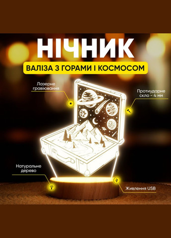 Кратко о ночнике: Это серия ночников из натурального бука и противоударного акрила, которая делается полностью в Украине компанией Lampic. Существенно отличается от других акриловых ночников качеством, яркостью и долговечностью. Работает от USB. В то время, как на рынке многие ночники работают на батарейках - мы от них отказались в пользу USB. Батареек хватает на 24 часа работы, потом нужно покупать новые. Мы стремились сделать продукт автономным, чтобы пользователю не приходилось регулярно тратить деньги и время на докупку батареек. Поэтому наш ночник работает от самого универсального способа питания - USB, который подключается к розетке/ноутбуку/персональному компьютеру/повербанку/зарядной станции и вообще любому источнику питания с usb разьёмом. Это делает ночник полезным в дороге/во время отключений электроэнергии/в местах без розеток или электричества. Яркий и насыщенный свет. В ночник встроена лента на 12 светодиодов, которая делает свет равномернее, ярче, а цвет насыщеннее. Для сравнения - почти все модели акриловых ночников, которые представлены на рынке - оснащены лентой всего на 6 светодиодов. Как следствие - наш ночник вызывает больше "Вау" эффекта и лучше освещает комнату. Настоящая гравировка вместо печати. Хотите узнать, как делается этот эффект "горящей" иллюстрации, которая и делает этот тип ночников таким красивым? Толстый слой акрилового стекла полностью пропускает через себя лучи света и выглядит...обычно, но только до гравировки. Во время гравировки, специальный высокоточный лазер высокой температурой плавит акрил и выжигает все мелкие детали иллюстрации. Выжженные области задерживают на себе свет и начинают светиться. Визуально это выглядит так, словно по стеклу проходит много мелких светодиодов, и ночник выглядит волшебно. Кроме великолепного вида, гравировка имеет еще одно преимущество - её невозможно стереть. Если напечатанное изображение со временем тускнеет и стирается, гравировка живёт столько, сколько существует ночник и даже спустя 10 лет будет такой же выразительной, яркой и привлекательной, как в день покупки. Если вам важна долговечность - наш ночник вас удивит. Гарантийное обслуживание на каждый ночник. В отличии от магазинов, которые перепродают ночники из Китая, наши ночники от подставки до гравировки делаются в Украине, в Ивано-Франковске. Поэтому, если что-то сломалось, это можно отправить почтой и починить. Вы получаете гарантию на ночник в течение 1 года. В случае повреждения в дороге, мы отправим новый. В случае проблем/вопросов, вы можете позвонить и получить помощь напрямую от производителя. Спасибо, что дочитали. по всем вопросам пишите/звоните. Будем рады!