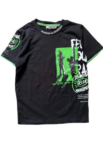 Черная футболка для мальчика подростка отличного качества Футболка для мальчика черная, с стильным салатовым принтом отшита из трикотажа высокого качества -95% котон 5 %-лайкра Принт на футболке нанесен очень качественно Футболка для подростка мальчика отлично носится и стирается. Порадуйте парня - купите ему эту футболку ее удобно и просто носить. Стильная черная футболка для мальчика подростка черная футболка для мальчика футболка для подростка мальчика футболка для мальчика черная