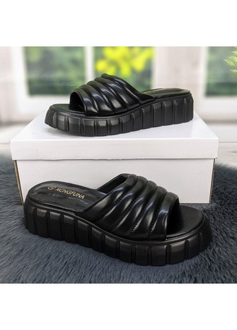 Женские черные шлепанцы на объемной пподошве. Верх - эко-кожа. Стелька - эко-кожа. Подошва из уплотненной пены, высота 3-4,5 см. Подойдут на ногу средней полноты и шире средней. Для выбора своего размера, смотрите размерную сетку на данную модель: (замеры по стельке от края до края)36р - 23,3 см 37р – 23,8 см 38р - 24,5 см 39р - 25,3 см 40р - 25,7 см 41р - 26,5 см