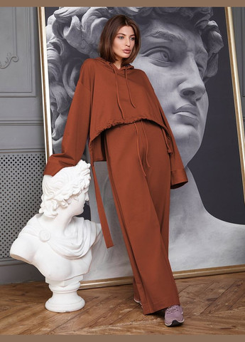КОММЕНТАРИЙ СТИЛИСТА Этот костюм — воплощение гармонии, тепла и вдохновения. Изготовлен из мягкой тринитки ла коста на флисе — фактурная поверхность снаружи и нежный начёс внутри создают уют и комфорт. Монохромное сочетание белого цвета с деталями из кашкорсе подчеркивает запястья и линию декольте, добавляя женственности. Ручная вышивка различными техниками с флористическим орнаментом и строки Василя Симоненко: "Сегодня всё для тебя — Озёра, поля, степи, И жить спешить нужно, Любить спешить нужно..." превращают этот костюм в особенную историю, наполненную теплом и смыслом. Модель соответствует стандартной украинской размерной сетке. ФАКТИЧЕСКИЕ ЗАМЕРЫ ПО ИЗДЕЛИЮ ВЕРХ (свитшот): Обхват груди: 42 – 114 см, 44 – 116 см, 46 – 118 см, 48 – 122 см, 50 – 126 см Обхват талии: 42 – 61 см, 44 – 66 см, 46 – 68 см, 48 – 74 см, 50 – 78 см Обхват бёдер (по низу): 42 – 102 см, 44 – 103 см, 46 – 106 см, 48 – 108 см, 50 – 110 см Ширина плеч: 42 – 61 см, 44 – 62 см, 46 – 64 см, 48 – 65 см, 50 – 66 см Длина переда: 42 – 64 см, 44 – 64 см, 46 – 64 см, 48 – 64 см, 50 – 65 см Длина рукава: 42 – 51 см, 44 – 51 см, 46 – 51 см, 48 – 51 см, 50 – 52 см Обхват рукава: 42 – 42 см, 44 – 44 см, 46 – 46 см, 48 – 48 см, 50 – 49 см НИЗ (брюки): Обхват талии: 42 – 66 см, 44 – 70 см, 46 – 74 см, 48 – 78 см, 50 – 82 см Обхват бёдер: 42 – 100 см, 44 – 104 см, 46 – 108 см, 48 – 112 см, 50 – 116 см Длина по боковому шву с поясом: 42 – 104 см, 44 – 105 см, 46 – 105 см, 48 – 105 см, 50 – 105 см Длина шагового шва: 42 – 73 см, 44 – 73 см, 46 – 73 см, 48 – 73 см, 50 – 73 см РЕКОМЕНДАЦИИ ПО УХОДУ Рекомендуется деликатная стирка при температуре не выше 30°C. Не использовать отбеливатели. Гладить при низкой температуре с изнаночной стороны. Не отжимать. Не сушить в машине. ХАРАКТЕРИСТИКИ Сезон: осень/зима/весна Силуэт: oversize Посадка: средняя Фасон: костюм с вышивкой Тип застёжки: молния Материал: лакоста на флисе Состав ткани: 95% хлопок, 5% эластан Ткань: тёплая, мягкая, эластичная Декор: вышивка различными техниками Подкладка: нет Карманы: есть Бренд: RICA MARE Артикул: MKRM4207-2 Страна производства: Украина Размерный ряд: 42–50 Размерная сетка: стандартная украинская