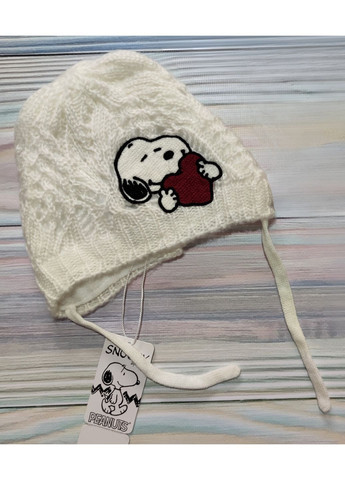 Очаровательная вязаная шапочка для девочки, которая станет идеальным выбором на весенне-осенний период. Шапочка выполнена в нежном молочном цвете с изящным узором "косички", что создает очень милый и нарядный вид. Главный акцент – качественная нашивка с любимым героем Снупи, который держит красное сердце. Внутри шапочка полностью утеплена мягким флисом для максимального комфорта, защиты от ветра и сохранения тепла в прохладные дни, но при этом она не зимняя. Удобные длинные завязки обеспечивают надежную фиксацию, полностью закрывая ушки малыша. Замеры: ПОГ 21, высота 16.