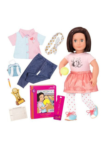 Кукла Our Generation Вероника с разноцветными волосами – это настоящая икона стиля с удивительными цветными волосами! Ее длинные волнистые пряди переливаются голубыми, фиолетовыми и розовыми оттенками, а ярко-голубые глаза с эффектом открывания-закрывания делают ее образ еще более выразительным. Вероника одета в трендовое платье с длинными рукавами и нежной отделкой из искусственного меха, а ее образ дополняют стильные фиолетовые очки-сердечки и волшебные туфельки. Мягкое тело делает куклу приятной на ощупь, а подвижные шея, руки и ноги позволяют легко менять позы и создавать уникальные образы. Безграничные возможности для стиля: одежда имеет легко открывающиеся удобные застежки, поэтому Веронику можно переодевать и комбинировать ее наряды с другими наборами Our Generation. С куклой Our Generation Вероника каждая игра будет яркой и неповторимой! Идеально подходит в качестве подарка, с которым можно создавать собственные уникальные образы, комбинируясь с другими наборами Our Generation. Особенности: материал: высококачественный пластик, синтетическое волокно (голова, руки, ноги, волосы), текстиль (одежда), мягкий наполнитель (тело); глаза: ярко-голубые, открываются и закрываются; волосы: длинные, волнистые, голубого цвета с фиолетовыми и розовыми прядями (можно расчесывать и укладывать); подвижные руки, ноги и голова; подходит для большинства аксессуаров, одежды и мебели Our Generation (46 см); отвечает европейским, канадским и американским стандартам безопасности, не содержит фталатов и BPA. Комплектация: кукла; платье с длинными рукавами и меховой отделкой; фиолетовые очки-сердечки; нижнее белье; туфельки с сердечками. Рост куклы: 46 см. Рекомендовано для детей от 3 лет.