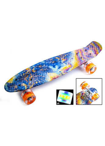 Пенни борд с ручкой "Cool Eye" (cветящиеся колеса) Яркий, стильный пенни борд - лучший выбор для современных детей и подростков. Эти легкие, удобные и маневренные скейты пользуются широкой популярностью среди детей и взрослых во всем мире. Вся дека оформлена ярким рисунком, а одна её сторона имеет изгиб вверх. Также, в деке данного скейта располагается отверстие, которое служит ручкой для его переноски. Теперь у Вас есть реальная возможность идти в ногу со временем и стать обладателем этого чудного спортивного снаряда по выгодной цене. Особенности: колёса светятся ручка в деке для удобной переноски пенни борда высокопрочный пластик в основе деки - легкость и долговечность компактный размер доски подходит для детей, подростков узорный рисунок с антискользящим эффектом прочная металлическая подвеска модификация подшипников ABEC-7 Характеристики: Тип: пенни борд Возраст: 5+ Цвет: Разноцветный Размер доски: 57 х 16 см Колеса светящиеся: да Тип колес: PU бесшумные мягкие (не пластмассовые) Размер колёс: 60 х 45 мм (подшипники ABEC 7) Жёсткость колес: 92А Максимальная нагрузка: 70 кг Подвеска: алюминий
