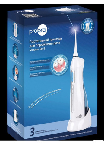 Ирригатор стационарный Prooral 5102: профессиональный уход за зубами и деснами в домашних условиях Достигните безупречной чистоты и здоровья вашей полости рта с помощью стационарного ирригатора Prooral 5102. Это инновационное устройство использует мощную пульсирующую струю воды, чтобы эффективно удалять зубной налет, остатки пищи и бактерии из труднодоступных мест, куда не всегда достает зубная щетка. Преимущества Prooral 5102: 10 режимов чистки: Широкий спектр настроек для персонализации ухода за зубами и десной. Режимы для чувствительных десен, массажа десен, ортодонтических конструкций и других нужд. Эффективное удаление зубного налета Ирригатор удаляет 99,9% бактериального налета с обрабатываемых участков, производит глубокую очистку межзубного пространства и линии десен, куда не достает зубная щетка и зубная нить. Обеспечивает чувство чистоты и свежести. Улучшение состояния десен Мощная пульсирующая струя воды комфортно массирует десны и стимулирует кровообращение. Это укрепляет десну и делает их сильными и здоровыми. Ирригатор превосходит традиционную зубную нить, как в уменьшении воспаления десен (гингивита), так и в уменьшении кровоточивости десен. Непревзойденная очистка вокруг брекетов Мощная и тонкая струя воды идеально очищает участки вокруг ортодонтических конструкций: брекетов, мостов, коронок и т.п.; гораздо эффективнее традиционной зубной нити. Возможности: Мощная пульсирующая струя воды – 1400 пульсаций в минуту. Бесступенчатая регулировка давления воды в диапазоне 30 – 110 PSI позволяет установить оптимальную величину давления. Каждый член семьи может подобрать для себя комфортный режим. Универсальная кнопка управления. Нажатие: включает и выключает ирригатор. Вращение: регулировка давления. Функция памяти: во время последующего использования не нужно повторно регулировать давление. Многофункциональная ручка: при нажатии на кнопку насадка легко снимается и одевается; насадка вращается на 360° для легкого доступа к любому участку полости рта; переключатель Вкл/Выкл позволяет легко приостанавливать подачу воды. Функция напоминания с интервалом 30 секунд. Напоминает о чистке следующего зубного ряда. Автоматическое отключение после двухминутного цикла. Доступно 4 вида сменных насадок, для различных задач ухода за полостью рта. Входит в комплект: стандартная насадка х3 шт., насадка-скребок для языка х1 шт. Не входит в комплект: пародонтологическая и ортодонтическая насадка. Футляр для хранения до 4 насадок Большой резервуар для воды объемом 600 мл Наружный адаптер питания. Универсальное напряжение (100–240 В). Комплектация: базовый блок х 1 шт. Резервуар для воды х1шт. Футляр для хранения насадок х 1 шт. Стандартная насадка x 3 шт. Насадка-скребок для языка х 1 шт. Инструкция по эксплуатации х 1 шт. Производитель может изменять свойства, характеристики, внешний вид и комплектацию товаров без уведомления.