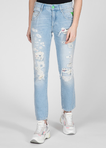 Цвет Голубой / Фасон Прямые / Высота посадки Средняя талия / Декор Потертости / Сезонность Демисезон