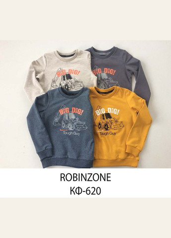 Кофта на мальчика от Тм Робинзон. Рукава на манжетах. Украшен принтом. Материал: двунитка р.110: длина спереди - 40 см, рукав от подмышки - 29,5 см, п/об гр - 32 см