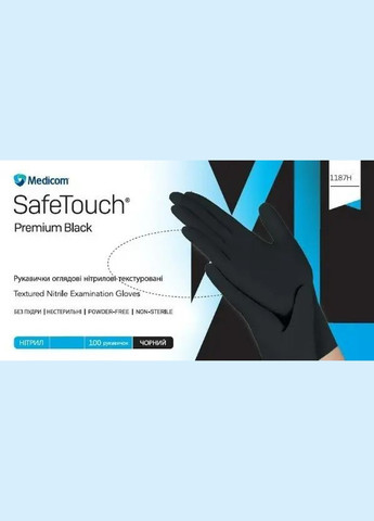 кешбэк от 2 ₴рассрочка-31%230 ₴250 ₴173 ₴Бесплатная доставка сПерчатки Medicom Premium без пудры 100 шт., S (черные), 5 гр SafeTouch (306740619)