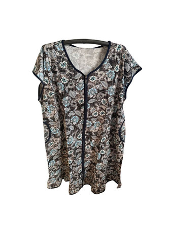 Халат женский хлопковый удобный, практичный и стильный выбор для дома. Он сочетает в себе элегантность дизайна и практичность, обеспечивая максимальный комфорт во время отдыха. Изделие является легким с короткими рукавами, которые обеспечивают удобство и свободу движений, имеет два функциональных кармана и удобную молнию, что позволяет легко надевать и снимать халат. В составе ткани: 95% натурального хлопка, который хорошо пропускает воздух, приятный на ощупь и подходит для чувствительной кожи, 5% лайкры, которая обеспечивает легкую эластичность, сохраняя форму после стирки. Изделие имеет расцветку темно-синего цвета и дизайн дополнен пайетками серебристо-белого цвета, расположенные на груди, вдоль молнии, украшают карман и нижнюю часть изделия. Этот халат идеально подходит для домашнего использования, отдыха или даже легких прогулок в теплую погоду. Его качественная ткань и приятный дизайн делают его практичным и стильным элементом гардероба. Замеры: Обхват груди: 140 см. Обхват бедер: 148 см. Длина по спине: 115 см.
