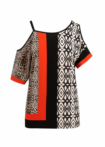 Цвет Черный / Стиль Кэжуал / Узор Леопардовый / Фасон рукава Комбинированный
