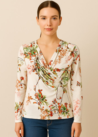 Цвет Молочный / Фасон На запах / Стиль Кэжуал / Узор Цветочный / Фасон рукава Вшитый
