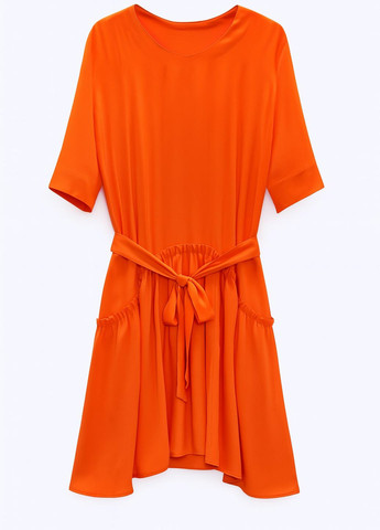 Платье свободного кроя кораллового цвета от бренда Sassofono.