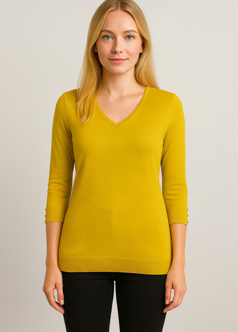 Цвет Горчичный / Фасон Пуловер / Узор Однотонный / Стиль Кэжуал / Длина рукава Рукав 3/4