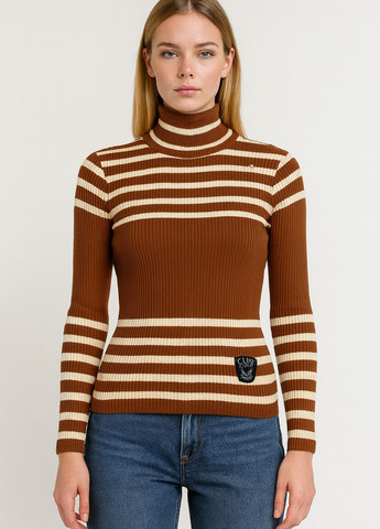 Цвет Коричневый / Фасон С длинным рукавом / Узор Полоска / Стиль Кэжуал / Сезонность Зима