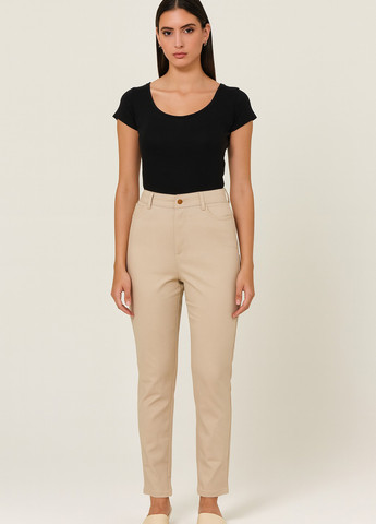 Цвет Бежевый / Материал Хлопок / Фасон Зауженные / Высота посадки Высокая талия / Узор Однотонный