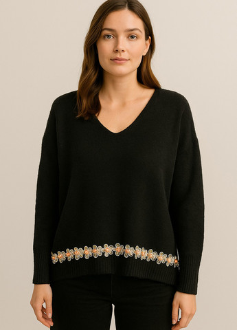 Цвет Черный / Фасон Пуловер / Узор Однотонный / Стиль Кэжуал / Длина рукава Длинный