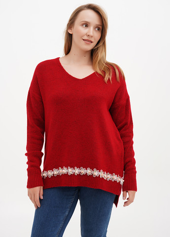 Цвет Красный / Фасон Пуловер / Узор Однотонный / Стиль Кэжуал / Длина рукава Длинный