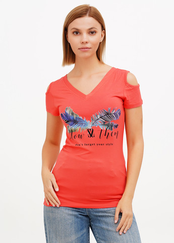 Цвет Коралловый / Материал Трикотаж, Вискоза / Узор Рисунок / Стиль Кэжуал