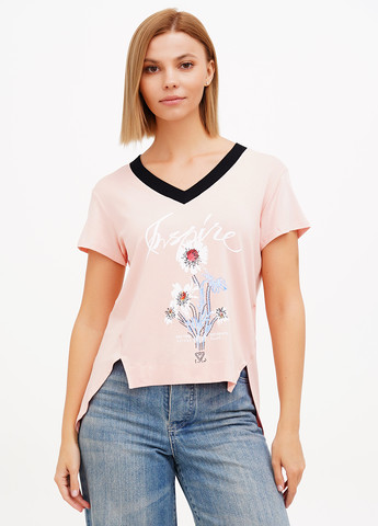 Цвет Персиковый / Материал Трикотаж, Вискоза / Узор Цветочный / Стиль Кэжуал