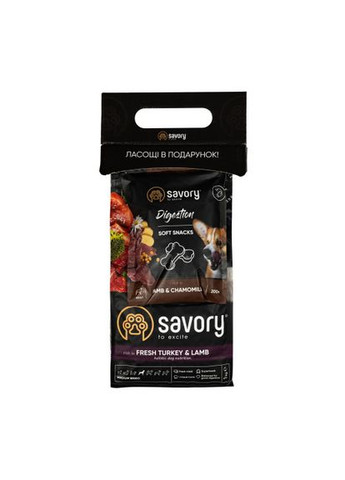 Полезное и вкусное в одном наборе! Savory Medium Breed rich in Fresh Turkey & Lamb – сухой корм класса холистик для собак средних пород весом от 10 до 25 кг. Эксклюзивная рецептура корма была разработана опытными европейскими специалистами по питанию домашних любимцев. Используя холистический подход, удалось создать биологически соответствующий, здоровый рацион для собак, который является полезным и вкусным настолько, что лапки оближешь. Сочетание отборных натуральных ингредиентов дает возможность заботиться о здоровье четвероногого, а изысканный вкус – дарить ему наслаждение от ежедневного потребления корма Savory. Сухой корм для собак средних пород Savory содержит 50% качественного мяса индейки и ягненка, суперфуды, цуккини, шпинат и помидоры. Эти компоненты созданы природой для всегда бодрого и жизнерадостного песика. Состав: дегидратированная индейка (30%), рис, свежая индейка (15%), куриный жир, дегидратированный ягненок (5%), горох, сушеные яблоки, лососевое масло, гидролизат куриной печени, дрожжи, цуккини сушеные (1%), сухое кокосовое молоко (0,5%), семена чиа (0,5%), семена киноа (0,5%), сушеные томаты (0,5%), сушеный шпинат (0,5%), гороховая мука, сушеная куркума (0,2%), глюкозамин (0,025%) хондроитинсульфат (0,015%), маннанолигосахариды (0,015%), фруктоолигосахариды (0,01%), юкка Шидигера (0,01%), пробиотик инактивированная культура Lactobacillus acidophilus HA - 122 (15x10 клеток/кг) Аналитический состав: сырой протеин 25,0%, сырые масла и жиры 14,0%, влажность 10,0%, сырая зола 6,8% сырая клетчатка 2,5%, кальций (Ca) 1,6%, фосфор (P) 1,1%, натрий (Na) 0,4%, витамин А (3a672a) 16 000 МО, витамин D3 (3a671) 1.500 МО, витамин Е (3a700) 500 мг, холина хлорид (3a890) 700 мг, ниацинамид (3a315) 15 мг, биотин (3a880) 0,5 мг, цинк (Zn) (3b606) 100 мг, железо (Fe) (3b106) 80 мг, марганец (Mn) (3b504) 40 мг, йод (I) (3b201) 0,6 мг, медь (Cu) (3b406) 15 мг, селен (Se) (3b810) 0,2 мг Натуральные антиоксиданты: экстракты токоферола из растительных масел (1b306(i)), аскорбил пальмитат (1b304) и экстракт розмарина Энергетическая ценность: 3,730 ккал/кг Мягкое лакомство Savory с ягненком и ромашкой для улучшения пищеварения собак – дополнительное питание, которое можно использовать в качестве поощрения и, как вознаграждение для питомца. Не только высокая вкусовая привлекательность, но и полезные составляющие, являющиеся основой здорового питания, делают лакомства Savory идеальным дополнением к основному рациону и угощением для вашего любимца. Ягненок – гипоалергенный белок, с низким содержанием холестерина, легкий для усвоенияРомашка – очень полезное лекарственное растение, которое нормализует пищеварение, укрепляет иммунную систему и оказывает противовоспалительное действие. Состав: белок ягненка 26%, желтый горох, растительные жиры, тыква, гидролизованная куриная печень 7%, куриный белок 6%, коллаген 4%, гороховая мука, сушеная ромашка 2% Аналитический состав: сырой белок 28.0%, сырой жир 4.5%, сырая зола 8.4%, сырая клетчатка 1.6%, влажность 17.0%, кальций 1.4%, фосфор 1.1%, натрий 0.4%, омега-3 жирные кислоты 0.10%, омега-6 жирные кислоты 0.20% Пищевые добавки на 1 кг: витамин С (3а312) 100 мг Энергетическая ценность: 3,040 ккал/кг